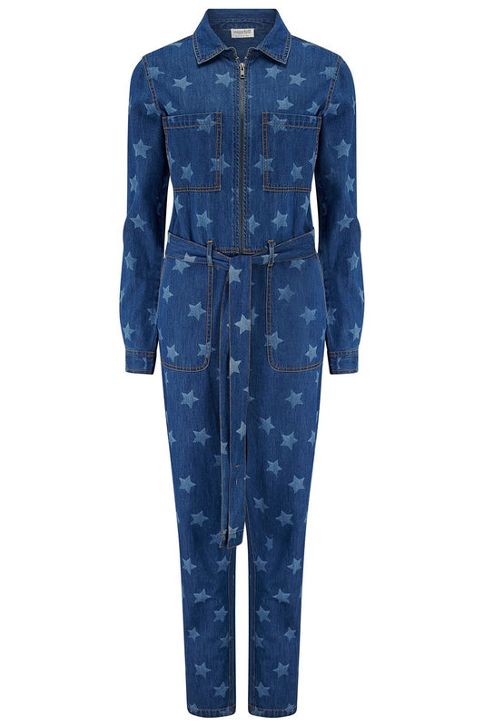 Sugarhill Brighton Bleached Stars Anwen Boilersuit - Mid Blue