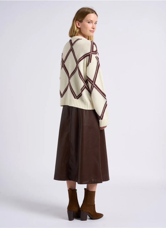 Suncoo Paris Floyd Faux Leather Midi Skirt Brown
