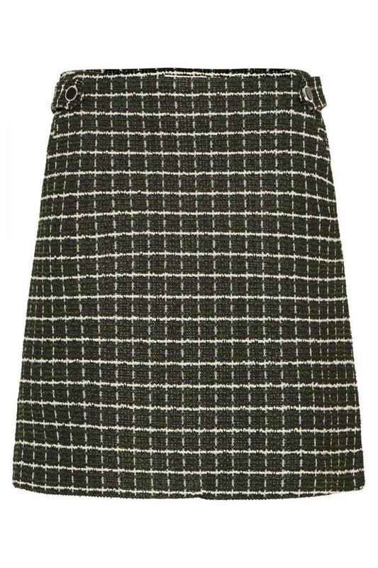 ICHI Cloule Check Tweed Skirt - Riffle Green