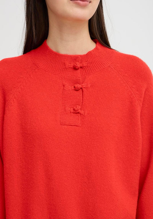 ICHI Dasila High Neck Sweater - Fiery Red