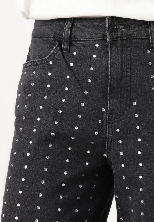 ICHI Braidy Washed Denim Crystal Jeans - Grey