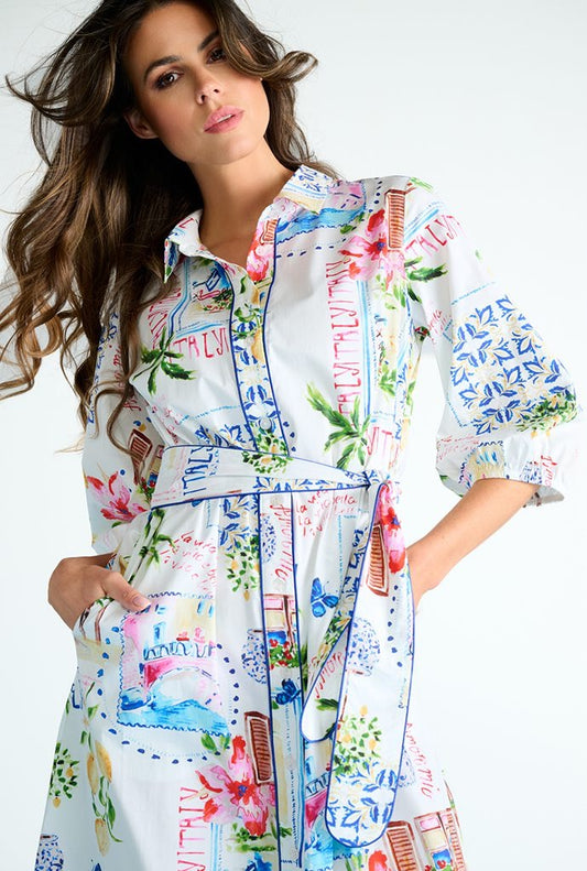 K-Design Floral Midi Shirt Dress - White/Blue