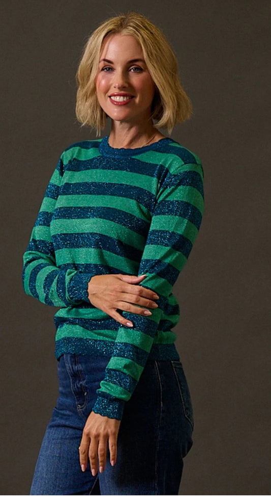 Sugarhill Brighton Alexa Scallop Jumper - Teal Sparkle Stripe