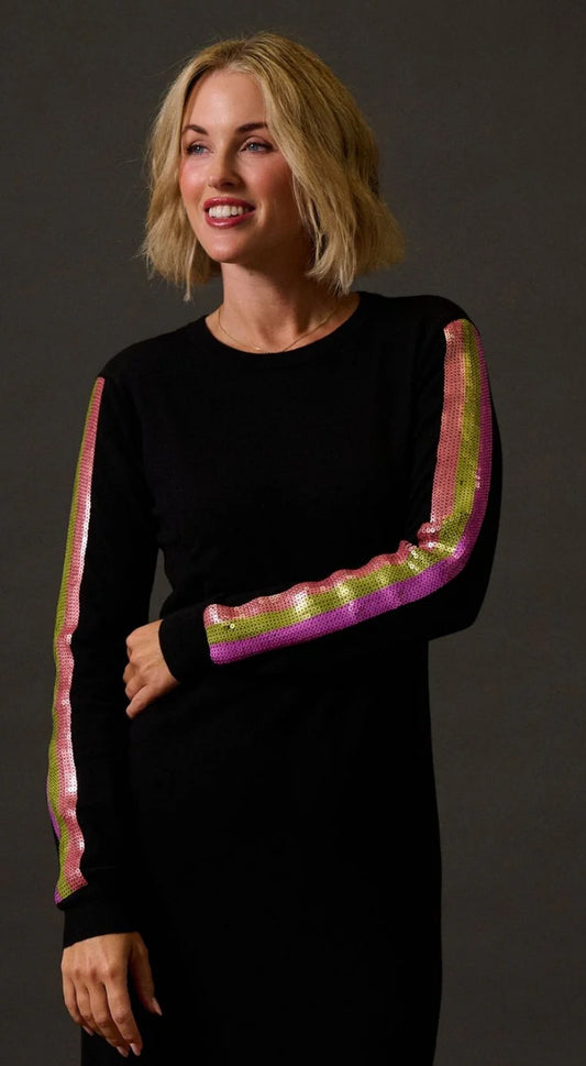 Sugarhill Brighton Sonia Knit Midi Dress - Black, Sequin Stripes