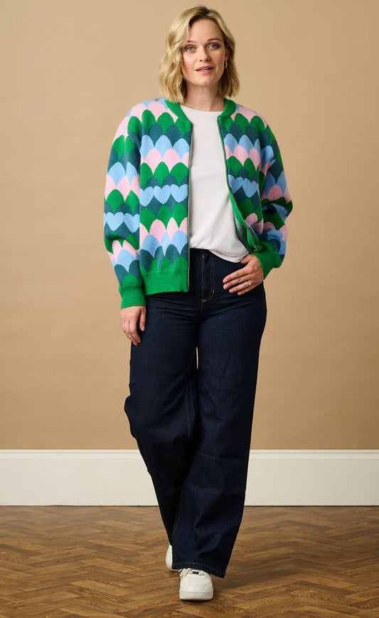 Sugarhill Brighton Solana Knitted Bomber - Multi Heart Scallop