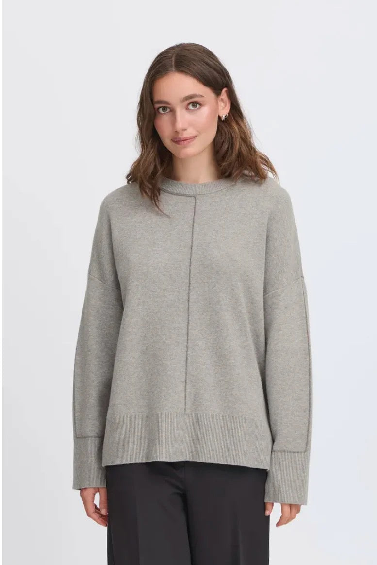 ICHI Ballia Long Sleeve Sweater - Grey Melange